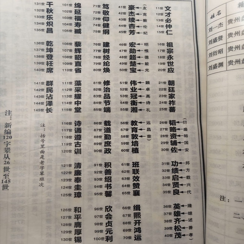 刘吉祥公刘氏通谱字辈派语