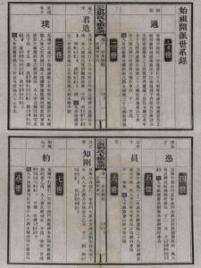 大(1世)、益(2世)、声(3世)、志(4世)、林(5世)、太(6世)、定(7世)、启(8世)、亦(9世)。